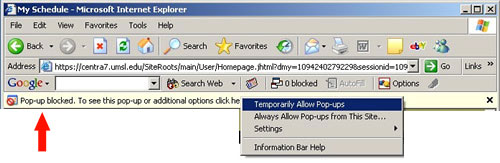 1. If pop-up blocking is enabled on your computer, you should see a tan bar above the page stating the pop up has been blocked.